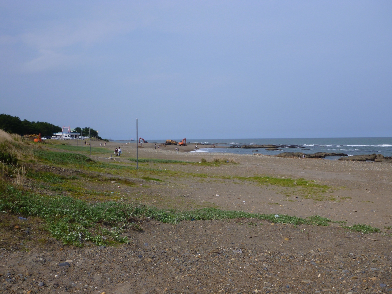 首都圏では有名な大洗海水浴場ですが、オンシーズンを前に重機がいっぱい入って復旧作業中でした。できるところからという感じなのでしょうが、駐車場にはがれきが残ったりもしていて、まだ半ばかなという感もありましたが、今シーズンからは普通に営業できるのではないでしょうか。