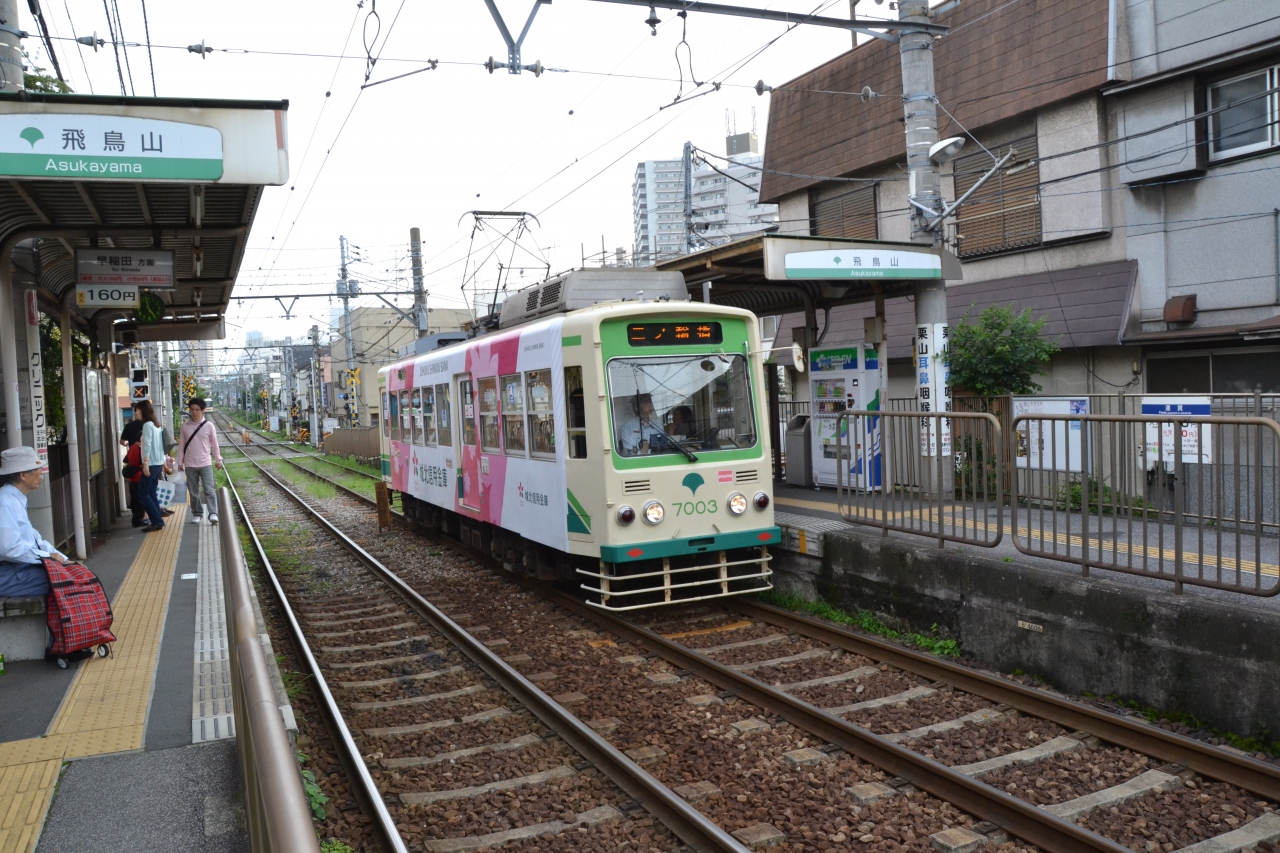 都電の王子駅から、ここ飛鳥山駅の間は飛鳥山公園に沿って都電は明治通りの道路上を走ります。都電荒川線は大半が専用軌道ですので、車と並走する都電の姿は往時を偲ばせる趣があります。飛鳥山から大塚方面へは再び専用軌道になります。映画「テルマエ・ロマエ」のロケ地にもなっている稲荷湯もこの町内の滝野川にあります。