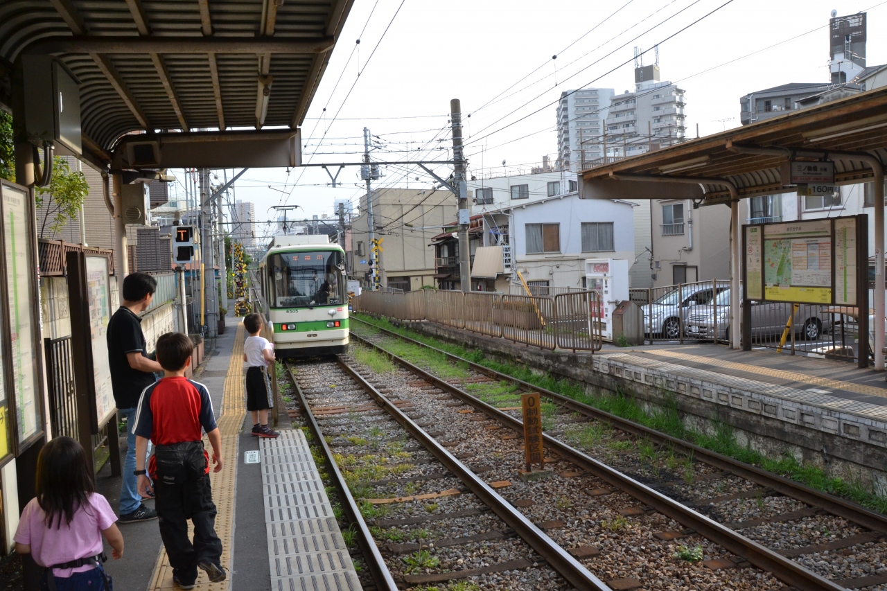 専用軌道と道路を走る部分の境界駅。道路上を走る都電を見るには好適です。
