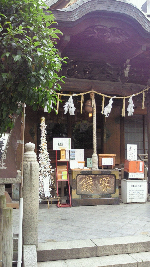 小さくまとまったかわいい神社で、お賽銭箱の横に上からピンクやブルーの繭玉がつるし雛のように連なってぶらさがっていて、それがとてもかわいらしかったです。