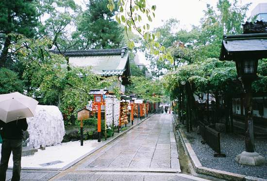 安井金比羅宮へ。悪縁を切り良縁を結んでくれるそう。左側に見える岩(お札が貼ってあって白く見えますが)が『縁切り縁結び碑』と言われ、の穴を通ると悪縁が切れ良縁を呼ぶ本格的な碑。