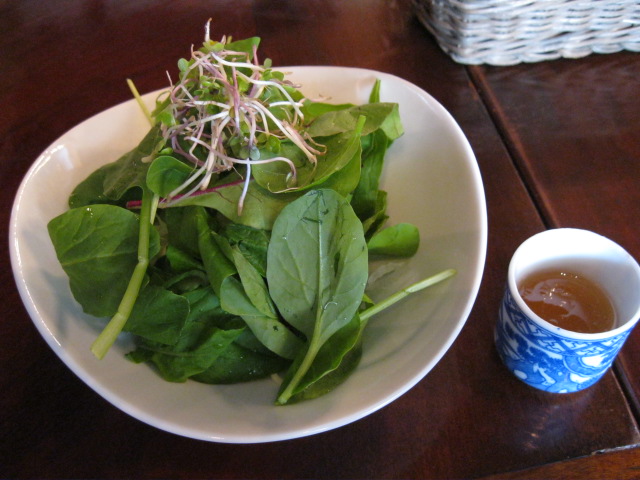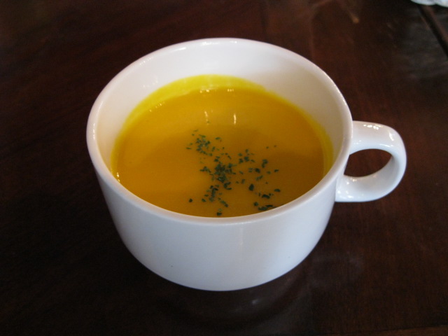 カボチャのスープとベビーリーフとスプラウトのサラダ。