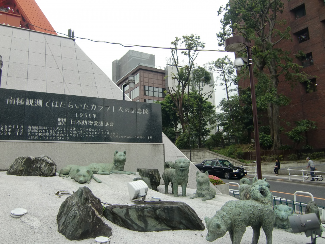 初めて知ったのですが、東京タワーのふもとには南極観測隊が連れて行った樺太犬(タロやジロや仲間たち)の銅像がありました。