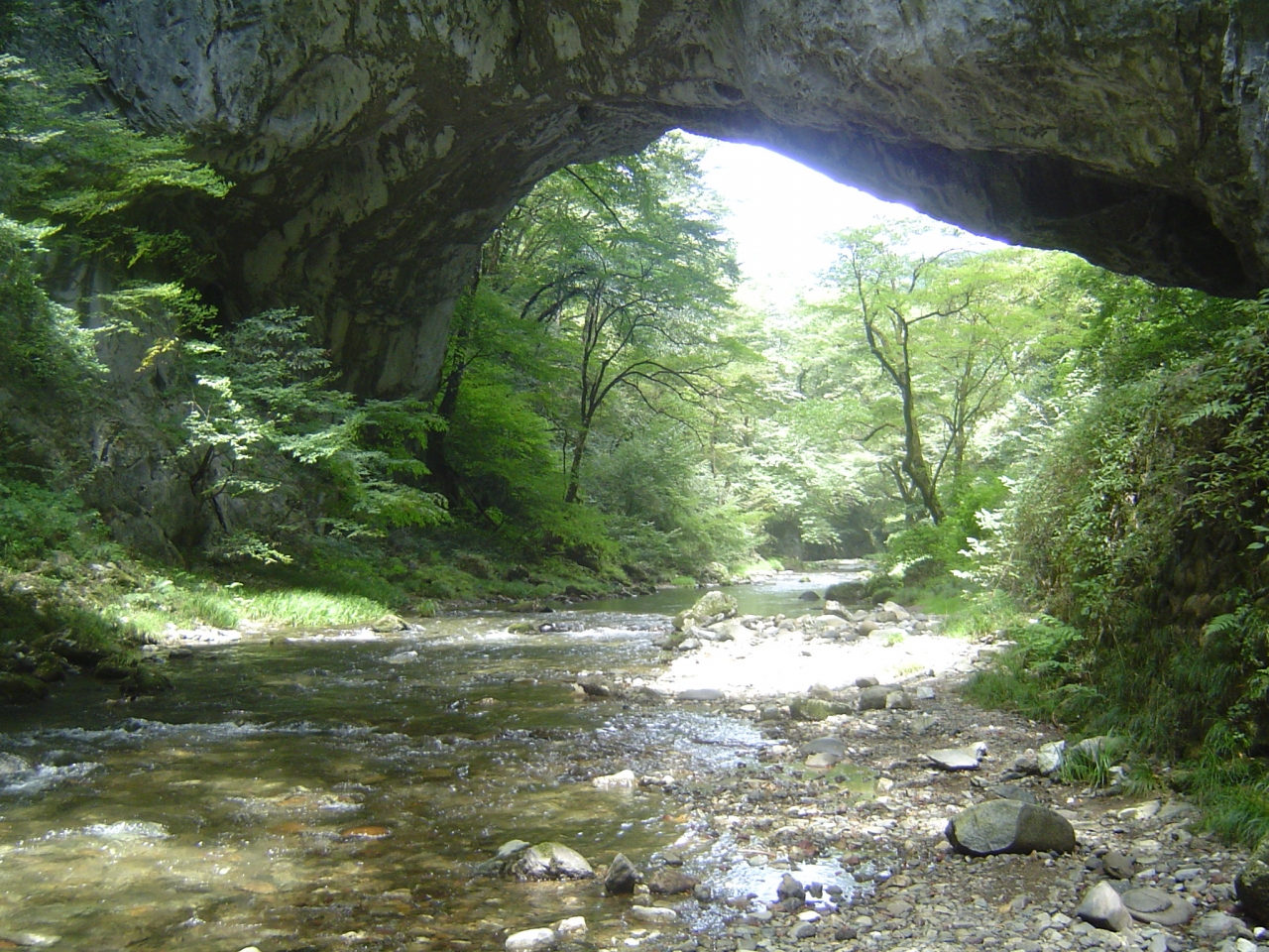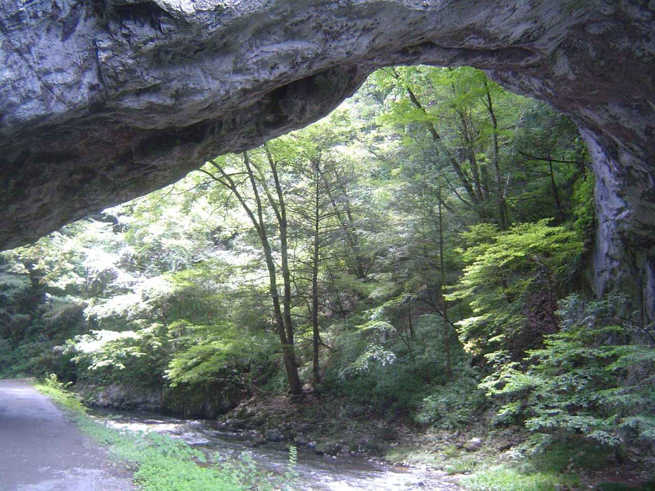 2009年9月に念願かなって初訪問しました。車で中国自動車道の東城ICを降り、案内板に従って(ちょっと迷いかけましたが)無事到着。駐車場に車を止めると、駐車場のまわりにレンタサイクル屋さんがあり、そこのおじさんに聞いたところ渓谷沿いに遊歩道があり、それが結構な距離とのことで迷わず自転車を借りましていざ出発。見どころはなんといっても雄橋。世界的に見てもかなり珍しい自然の橋だそうです。更に川に沿って下っていくと断魚渓。途中に鍾乳洞もあり中を見ることができます。自転車屋のおじさんの仰る通り遊歩道は往復するとかなりの距離ですが、自転車を借りれば1時間くらいで往復可能と思います。