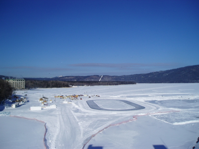 氷結した湖の上にどっさり雪が積もって、阿寒湖の上を歩けるんですよね、信じられません。