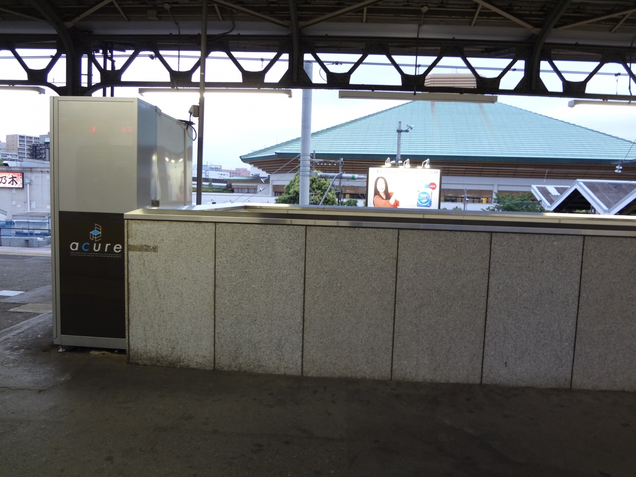 両国国技館や江戸東京博物館の最寄り駅です駅舎には居酒屋が併設されています。また一段低い所に3番ホームがあります。ここはかつて千葉より東へ向かう長距離列車の始発駅だったのです。今では成東へのお座敷列車など、臨時列車の始発駅として使われています。