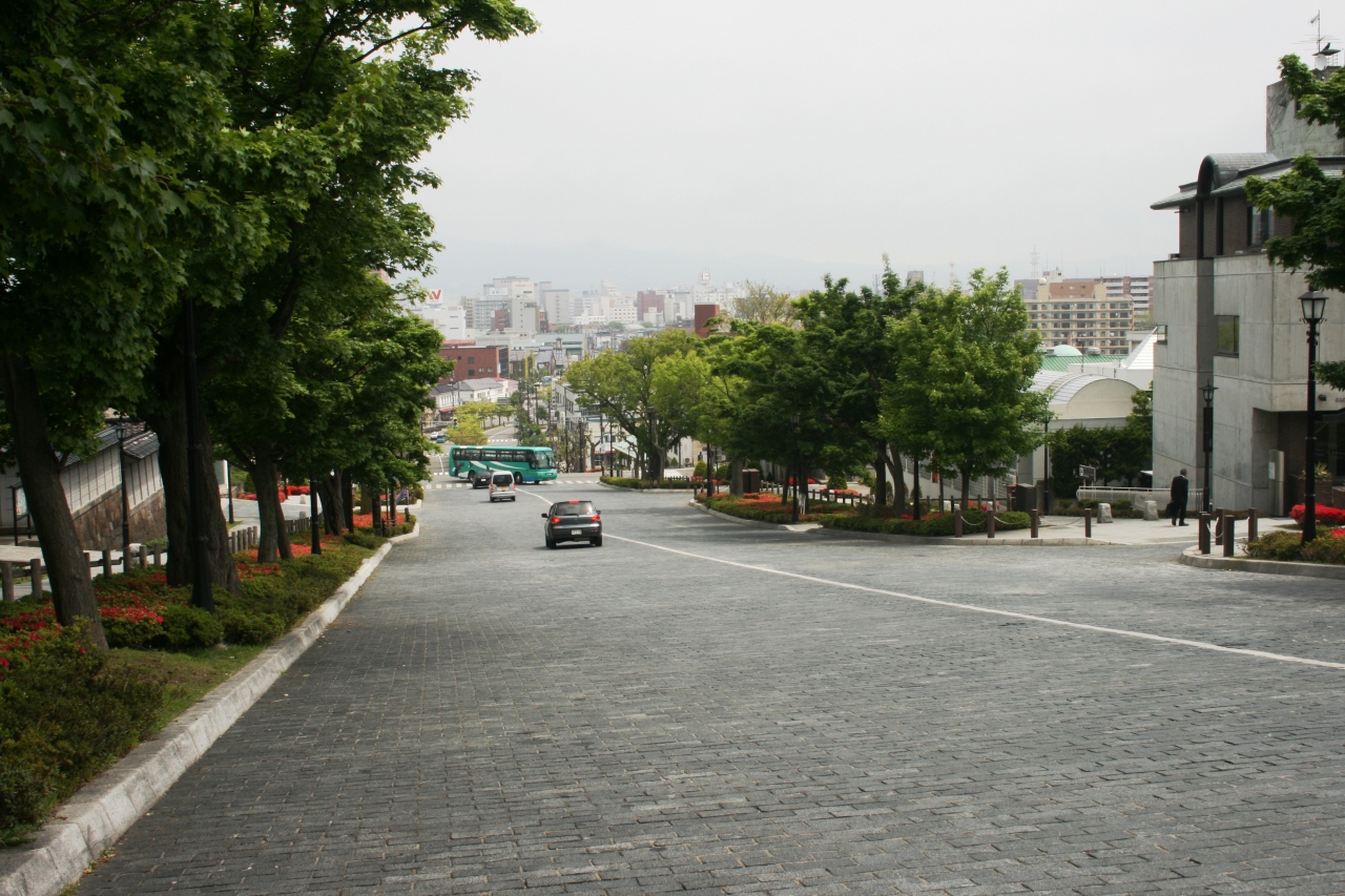 基坂は、下から見上げると旧函館区公会堂が見えるのが絵になりますが、ほとんどいつも路上駐車が邪魔します。