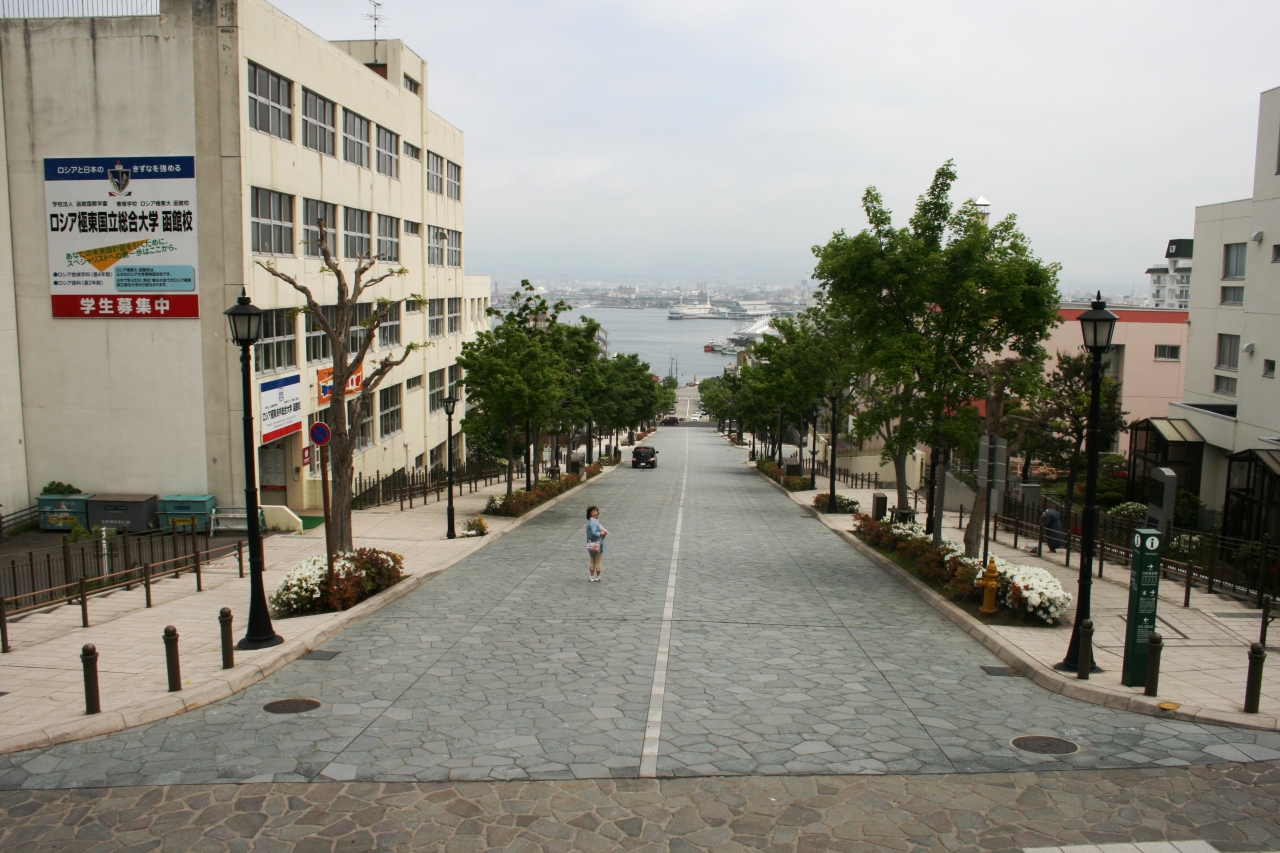 チャーミーグリーンのCMでおなじみの八幡坂は、函館港を見下ろす風景もステキ。