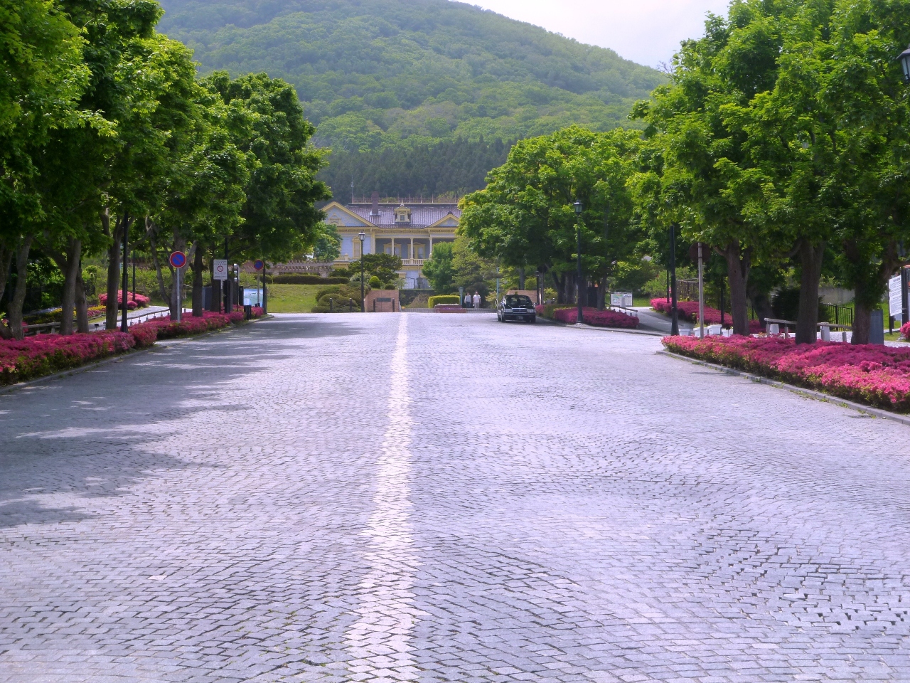 5月下旬から6月上旬にかけては、坂道の両側に植えられた白や赤のツツジが満開になり見ごたえがあります。