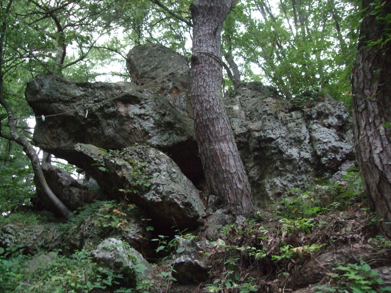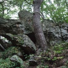 動き岩は、湯田中駅から徒歩10分。湯宮神社という神社の裏手の小山の上にあります。湯田中温泉の名所ということで訪ねました。お宮の裏に回ると、動き岩への入口があって、登ること数分。山の中腹から、突き出たような大岩が見えてきました。この岩は、「指一本でぐらぐら動かすことができる不思議な岩」といった紹介があって、本当に動かしたような話もあったのですが、とてもそのような風には見えません。しかし、土ばかりの一帯に、ここだけどこかから持ってきたような岩があること自体、不思議な場所ではあると思います。