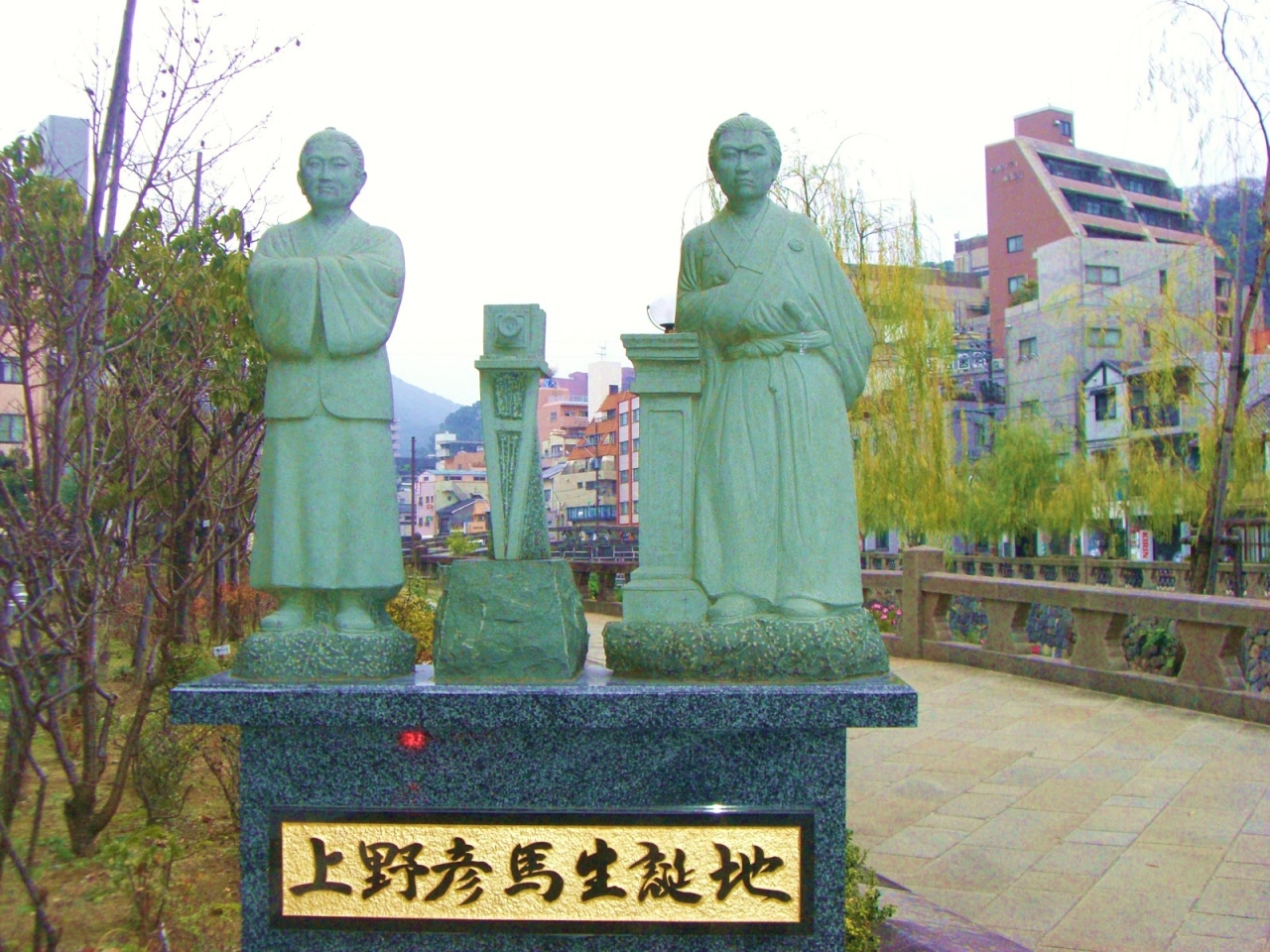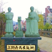 有名な坂本龍馬の写真を撮った上野さんと龍馬の2ショットの像。
