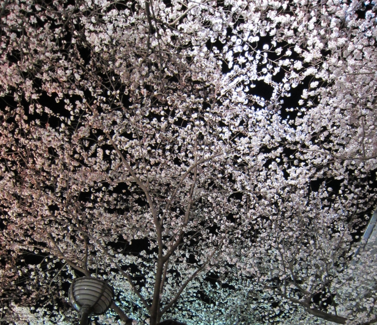 賀茂川近くの場所では上を見上げると一面の桜で、まるで空が桜になったようで本当に感動的でした。ライトアップもこの世のものとは思えないくらい美しかったです。