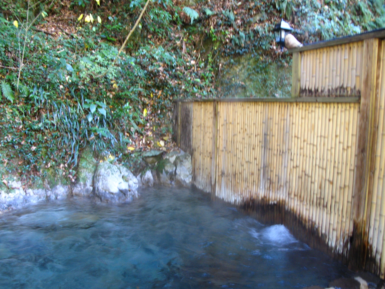 一つの岩風呂を竹で作った衝立で仕切って男女を分けている。(以前は衝立がなく混浴だったらしい。)衝立の横の湯底から大量の湯が湧き出ており、湯量・湯温とも申し分なし。源泉掛け流しが堪能できる。湯質は透明の炭酸泉で肌にいいそうである。