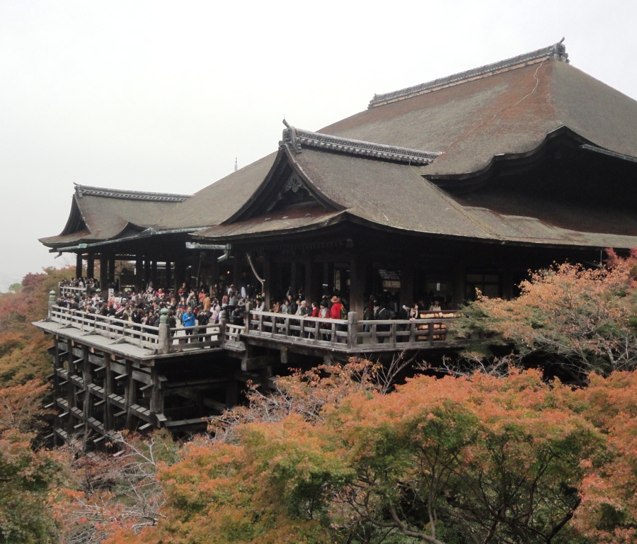 初めて京都を観光する人におすすめといえば、やっぱ清水寺でしょう。くぎを使わず木を組んだだけで造られた本堂。清水の舞台から見下ろす京都市内の絶景。江戸時代によくもまあこんなすごい物を造ったものだと訪れるたびに感心してしまいます。それだけにいつ行っても、ごった返す観光客。特に「舞台」の上にたむろする人混みは重量オーバーになっちゃうんじゃないのかしらと、心配になってきます。それでも崩れたなんて話は聞かないから、やっぱすごい技術力なんだろうなあ、とまた感心。
