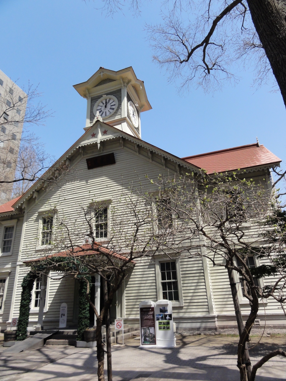 帰省時、田舎へのバスの往復で見かける時計台ですが、ビルの谷間にあっても、ベストポイントで写真を撮ると絵葉書のような写真になります。駅前に泊まったり、周辺散策時は私も写真を撮ります。