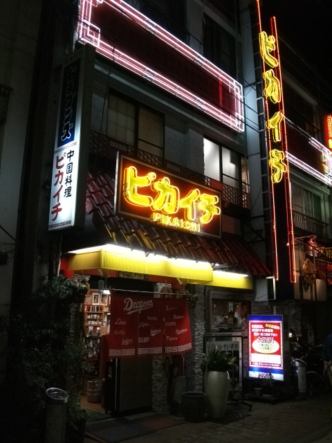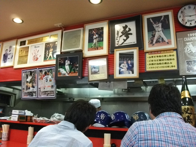 中日ファンのお店です。 昔の写真やユニフォームが飾ってあります。