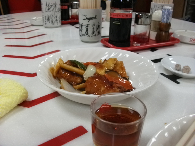 試合のない日に行ったので、静かに紹興酒を飲みながら料理3品食べました。