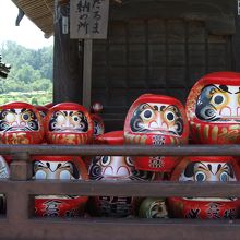 本堂の回りには、満願成就のお礼に納められた達磨がずらり