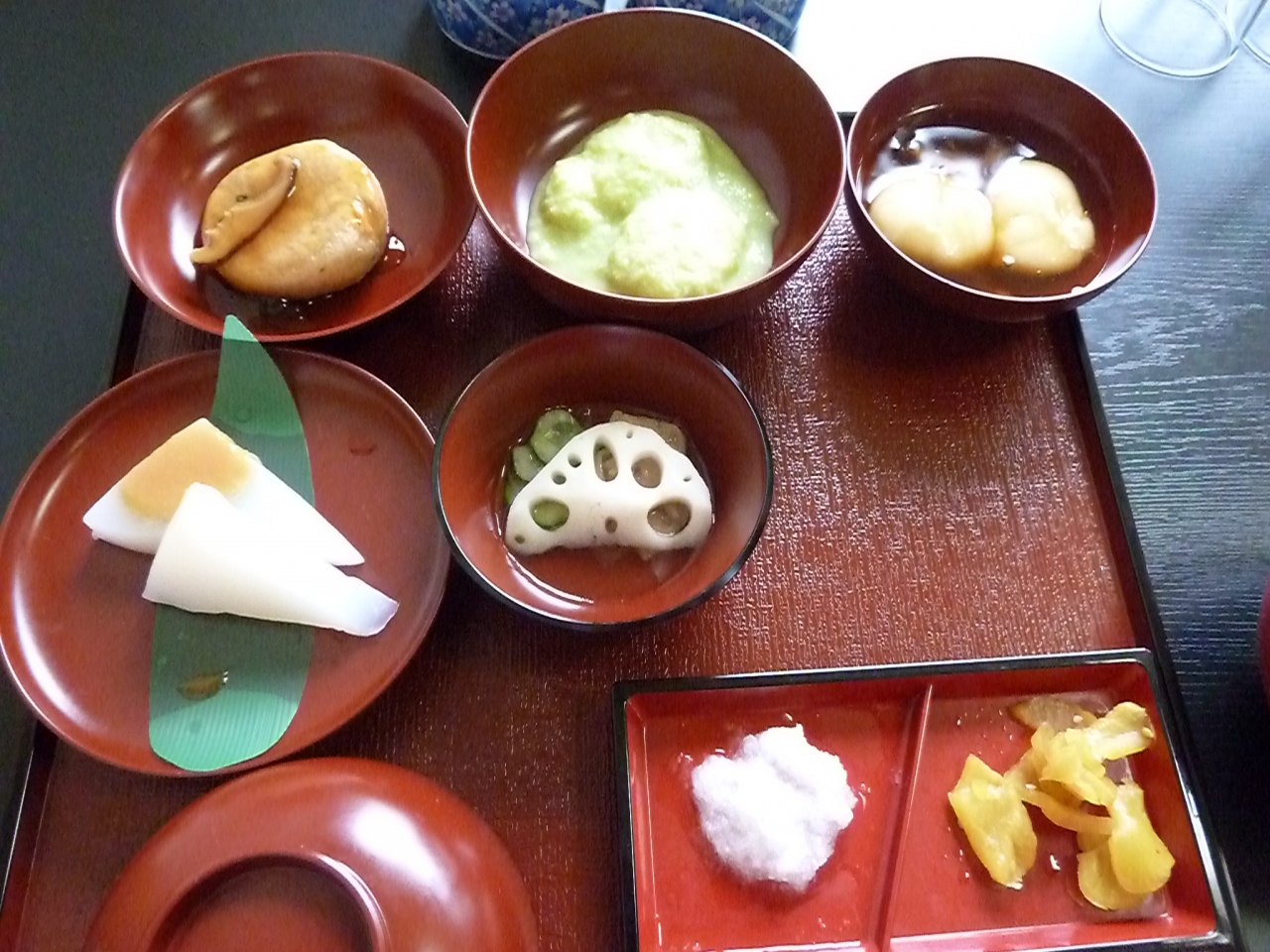 中尊寺に行く前に腹ごしらえ。郷土料理のもち会席。餅をおかずにご飯をたべるという