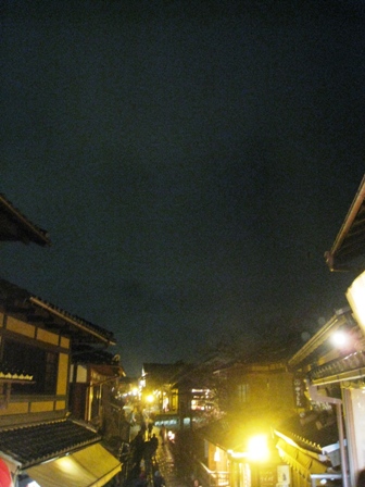 清水寺のライトアップに行った帰り、三年坂を歩いて下りました。とても風情のある階段が続き、両側には京都らしい佇まいのお店の数々がありました。店先に並んでいるものを眺めて下りるだけでも優雅な一時です。ここから二年坂の方へ続いています。