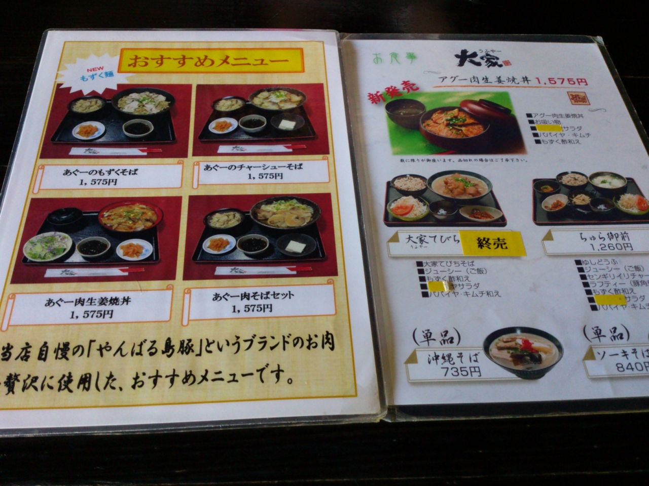アグーの肉そばセットは値段が少し高いかな~と思いましたが、美味しかったです。