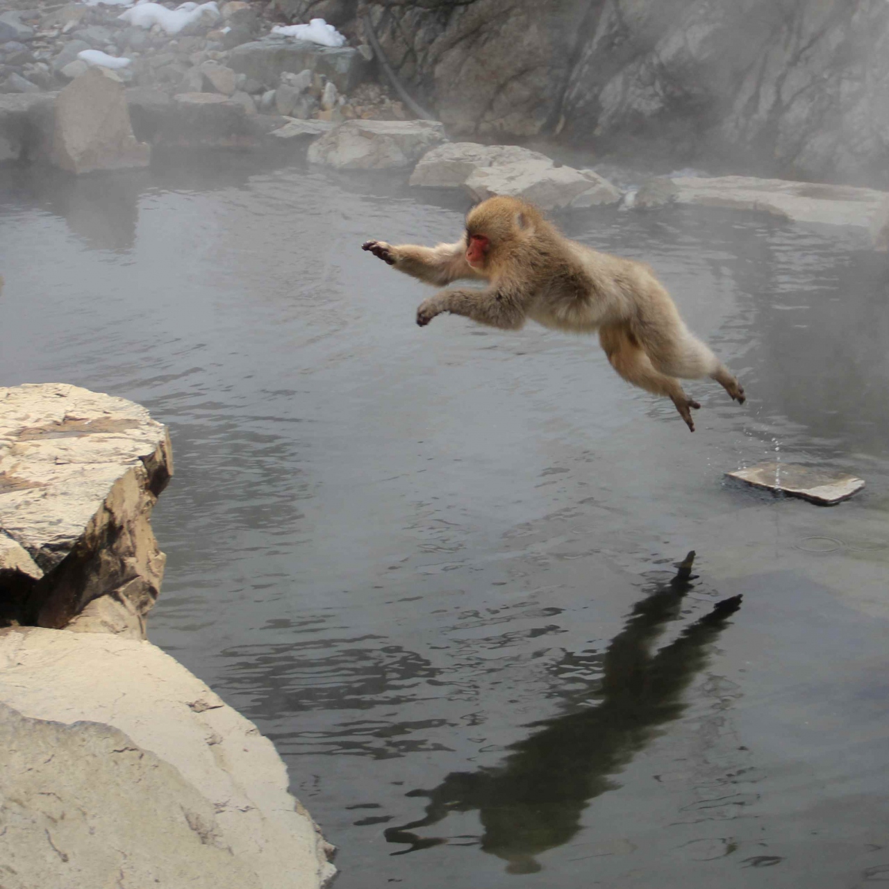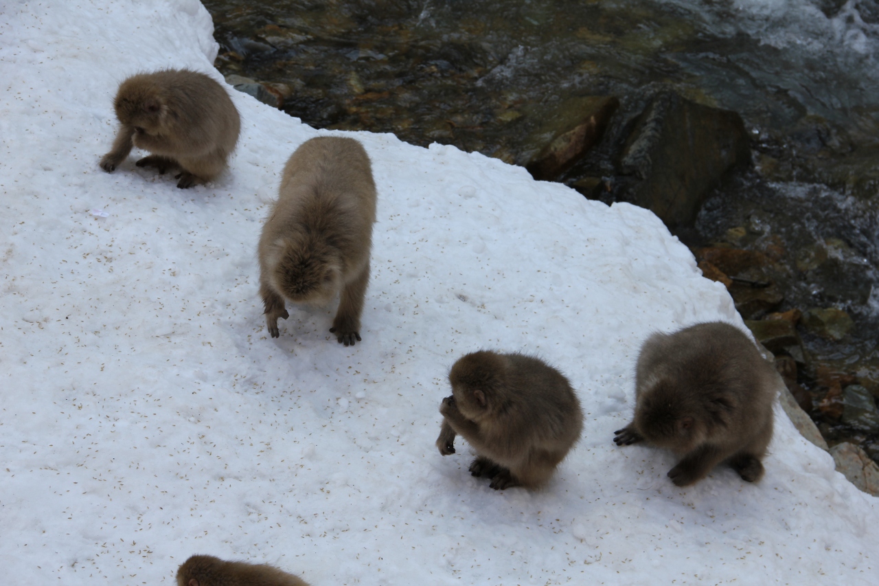 たくさんの猿が温泉に浸かっているのを見たければ、冬の朝方ですかね。