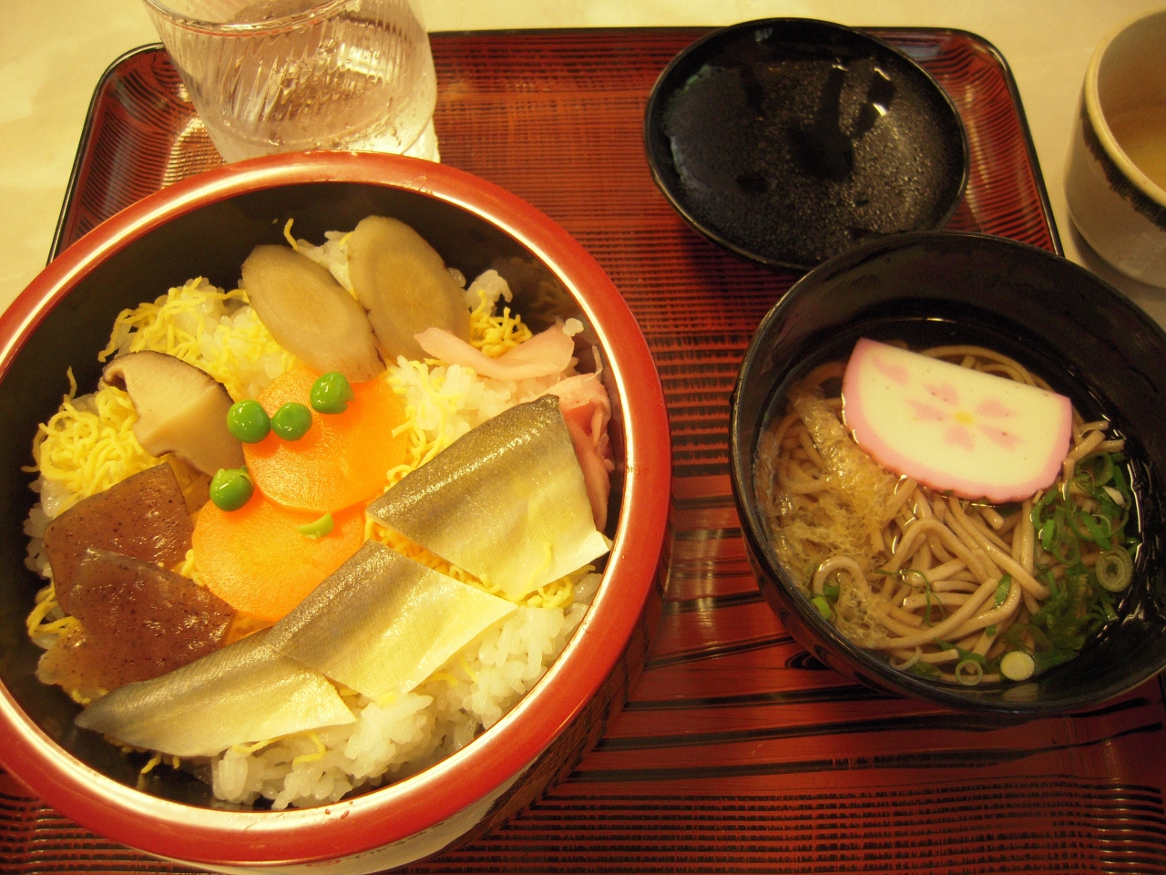 事前に鮎寿司750円か祖谷そば400円を調べ、且つ定食1200円は物足りないとの評判を聞いていたので、僕はあゆチラシ寿しを食べた。