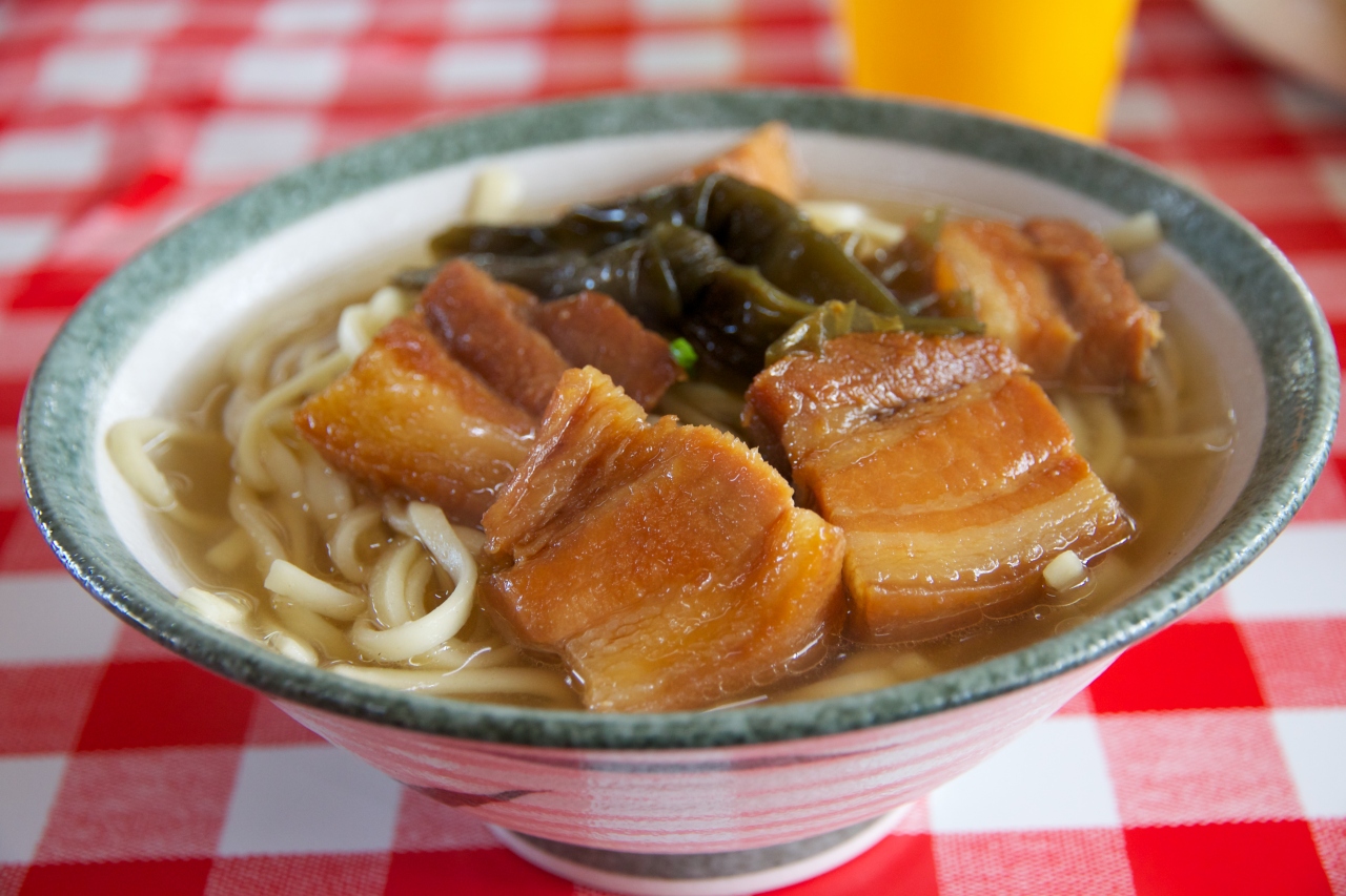 三枚肉そばを注文。500円…安い!肉がたくさん乗っかってました。甘めの味付けでした。