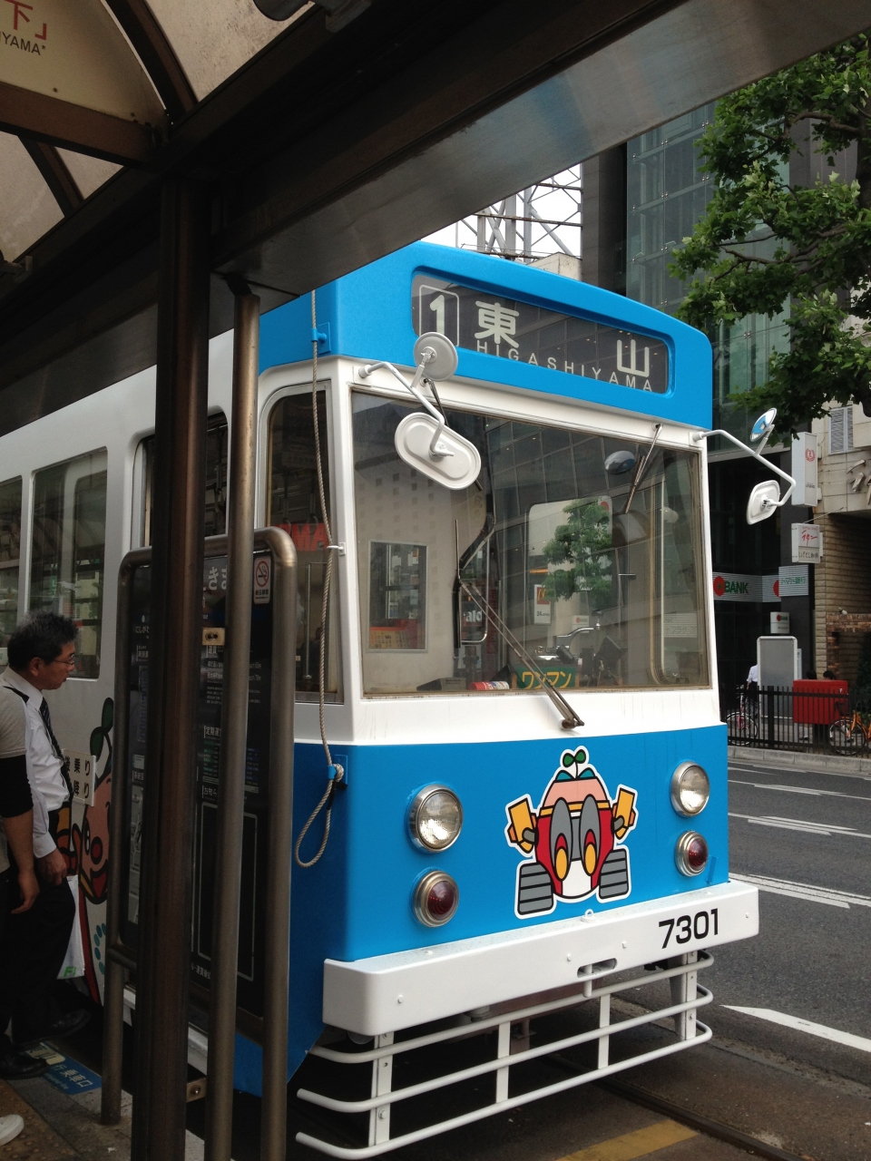 岡山駅から城下まで運賃は100円です。城下は岡山城、後楽園、岡山市オリエント博物館等に行くのに近くて便利です。市内を走るバスも便利そうですが、せっかくなので路面電車に乗ってみたくなります。後ろ乗り、前降りです。車内で両替もできます。