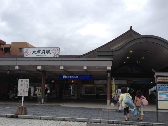 二日市で乗り換えが必要です。天神まで繋がっていればいいのに。駅構内に観光案内所があり、かなり親切に案内してくれます。また構内にコインロッカーがあります。太宰府駅を出てすぐに、太宰府天満宮に行く参道があります。