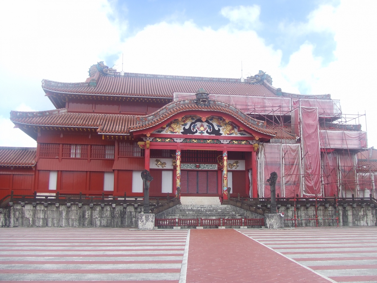 有名どころなだけあって、駐車場はいっぱい(ちょっと待ったらすぐ空きました)、中も観光客や修学旅行生で、けっこう賑わってました。建物外観は修復工事中だったようで、半分幕がかかっていましたが、これぞ、イメージの中にあった沖縄のお城、というのを見れたので、大満足でした。
