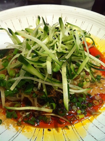 千切りのきゅうりは、ちょっと多めかな?これを、味が薄まるから苦手、