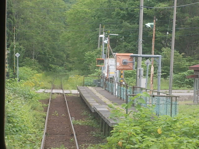 湯ノ岱から宮越にかけての区間は、江差線上では吉堀~神明間に次ぐ駅間距離を有していますが、基本的に日本海に注ぐ天ノ川に沿って線路が続く区間ですので、渓谷美を楽しむのに良いエリアです。但し、それ程急勾配での川ではありませんし、意外と草本に景観を阻まれる区間も長いので、良い風景を写真に収めるのは結構大変かもしれません。