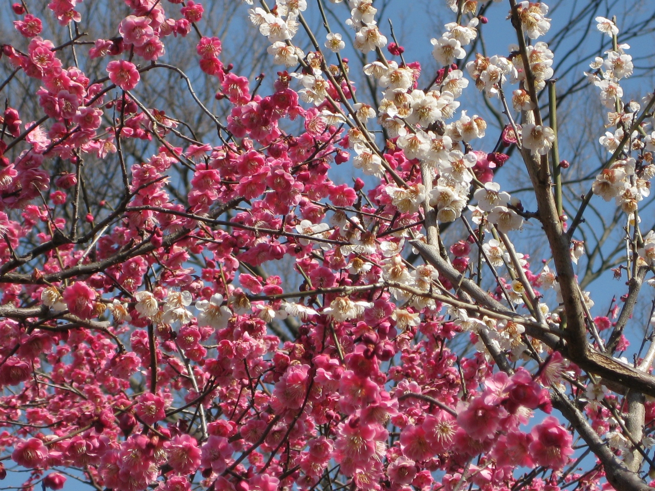 ピンクや白の梅が見事に咲いて、とても綺麗でした。