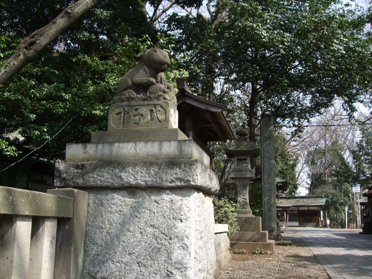 浦和駅周辺のちい散歩。調神社は「つきじんじゃ」と読みます。浦和駅から、中山道に出て、左折してしばらく行ったところ。有名なのは、「狛犬」ならぬ、「狛うさぎ」。神社の方に「狛うさぎはどこですか?」と聞いたら、「狛うさぎとはいっていませんが、・・」と場所を教えてくれました。すると、写真のように、入り口の両側に一対のうさぎの石像。片方は親子の像でしたが、こちらはお父さんうさぎでしょうか。境内には、大木がいくつもあって、うっそうとした雰囲気。工事中の場所が残っていて荒れた感じもありますが、ご愛嬌でしょう。