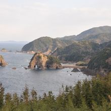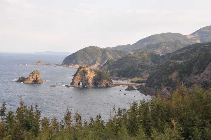 下田温泉から南に行くと切り立った崖と不思議な形をした岩が見えてきます。この一帯を妙見浦といいます。厳しい潮の流れに侵食された象の形をした岩など様々な奇岩があり、一見の価値があります。また路線バスの運転手さんによるとこのあたりは日本でも有数の夕日が美しい海岸なのだそうです。