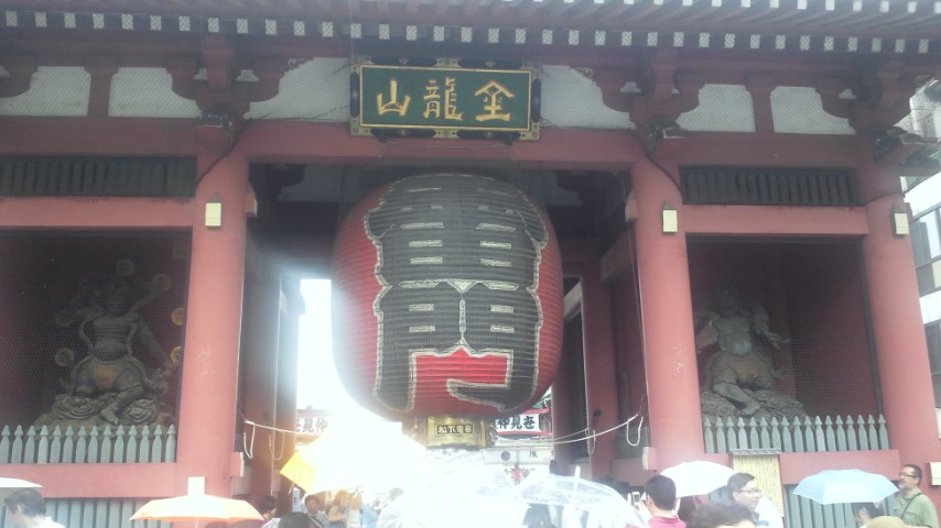 浅草寺の入口で、赤い門の中央に大きな提灯が目立ちます。提灯の左右には風神・雷神像が建っており迫力があります。門の前にはたくさんの観光客が写真を撮っていました。門を潜ると仲見世通りとなり道の左右には土産屋が連なっています。門を潜らなくても左右に道があり仲見世に行くことが出来ます。