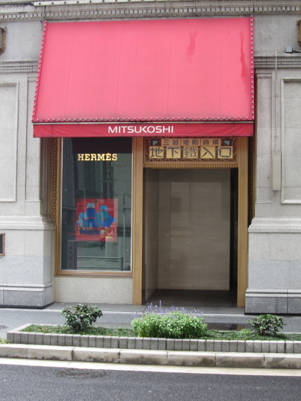 日本橋側からいくと堂々とした外観の正面玄関に、日本銀行側からいくとレトロでかわいい地下鉄の入り口(写真)を見ることができます。入り口にあるライオンの像が堂々としていて立派でした。