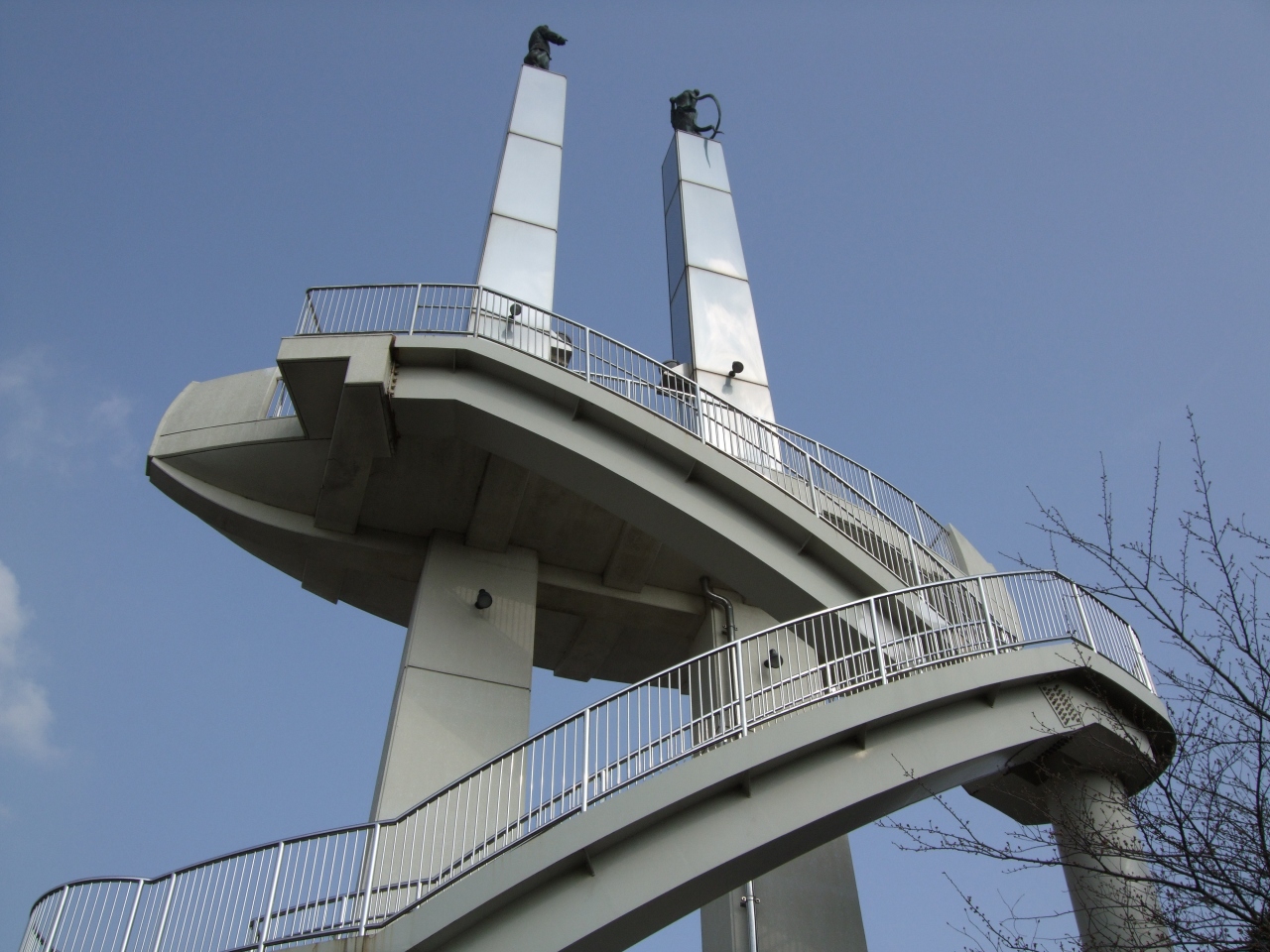 太田山公園の頂上にそびえる「きみさらずタワー」はヤマトタケルの伝説に基づくもの。ヤマトタケルが東征のおり、相模の走水から、上総の国に渡ろうとした際に、海が荒れて船が難破しそうになった時、妃のタチバナヒメが身を投げて、海を静めました。無事、上総に渡ったタケルは山頂から海を見下ろし、ヒメの末路を悲しみ、しばしこの地を離れず、後年、「君去らず」とこの地を呼ぶようになったのだそうです。タワーの先端にはタケルとヒメが向かい合って立っています。