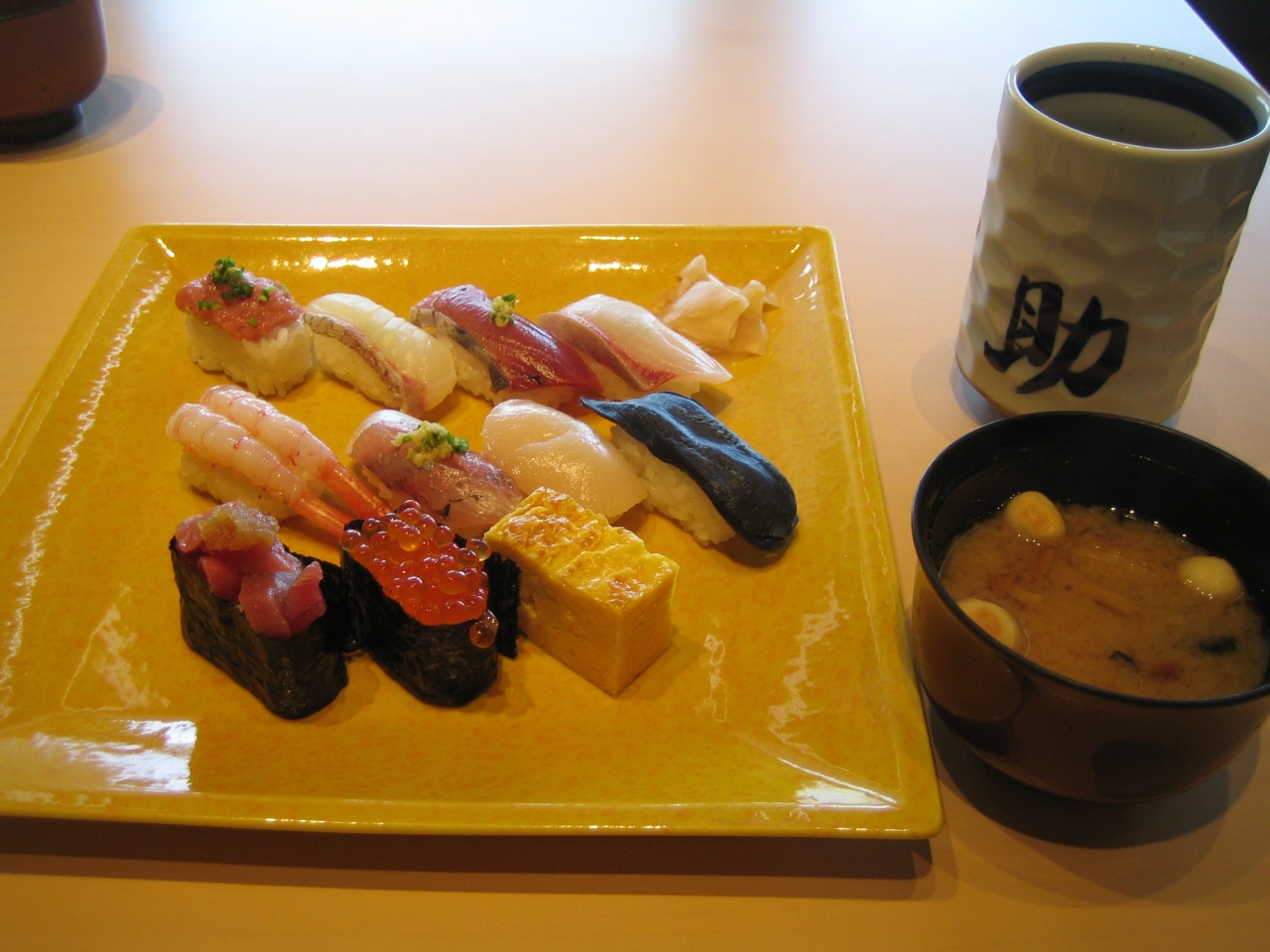 でもそれが何とも素敵な趣でとても気に入りました。8巻のにぎり、2巻の軍艦巻き、卵焼きとガリが載ってました。どのネタもおいしかったです。マグロの軍艦の上に醤油の大根おろしが載っていて、それは初めてで新鮮でした。私の中でヒットだったのはホタテです。本当に甘くてやわらかくて、もっと食べたかった。