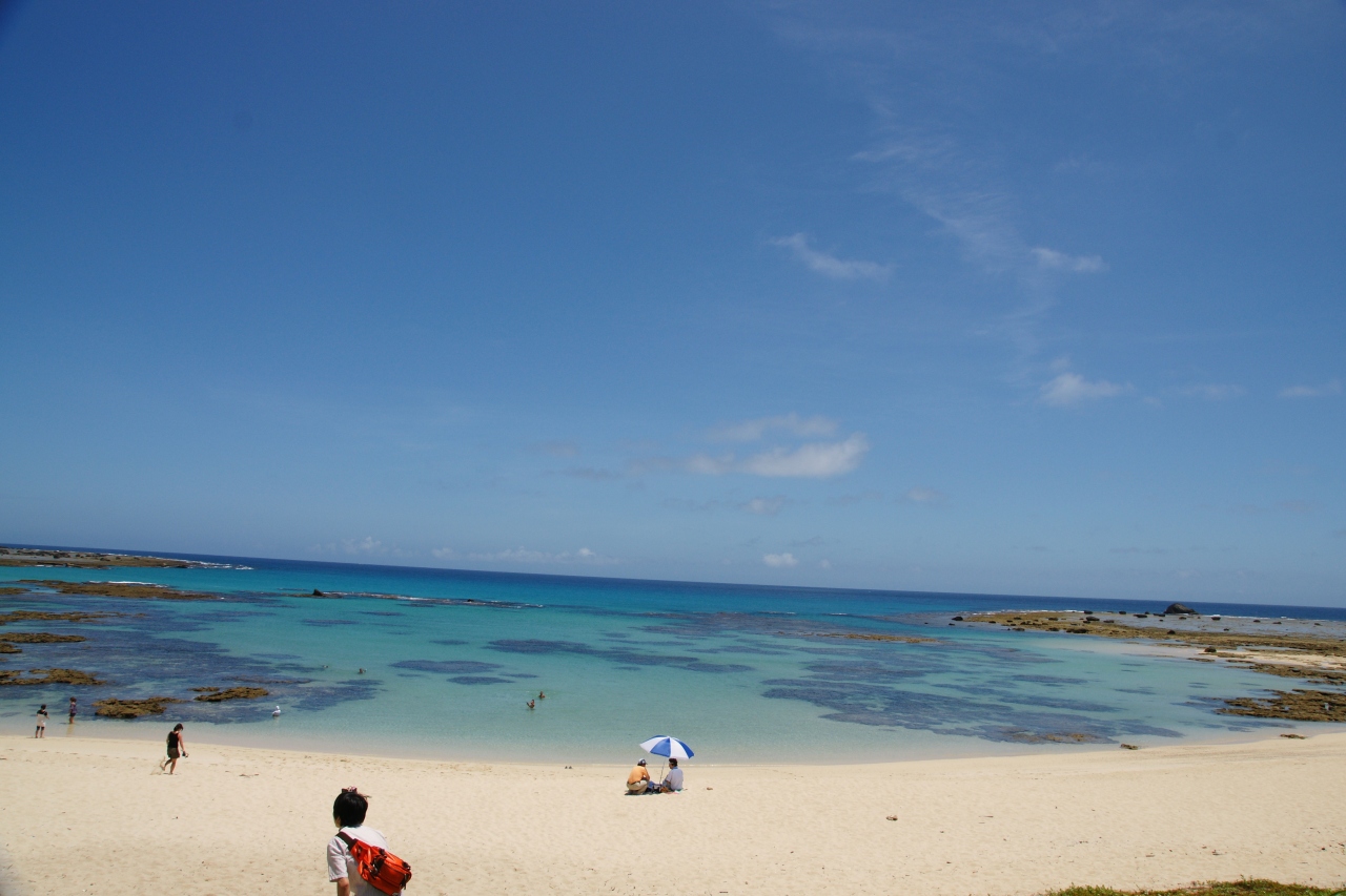 調べたら、奄美の中でもここのビーチはキレイだということだったので、到着してレンタカーを借りた足で最初に向かいました。強い日差しの中で、白い砂浜と青のグラデーション、黒く模様を作る珊瑚?の影は本当にキレイでした。中に入ってはいませんが、水もすごく透明でした。