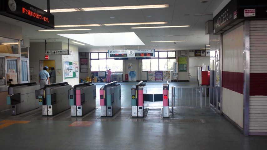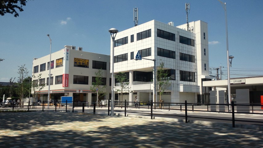 東口駅前は昔ながらの商店街で、ロータリーは狭くごちゃごちゃしています。西口は綺麗なロータリーですが商店はあまりないです。西口駅前は公園のようになっていて木々の下に椅子があり涼むことが出来てよいです。列車の待ち時間には暑いホームで待つより、木々の風を感じながら休むことが出来ました。改札横にはパン屋がありました。