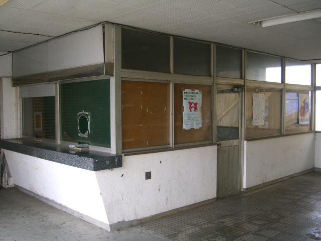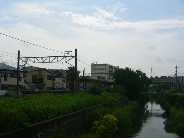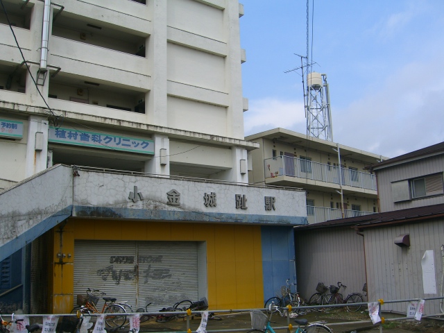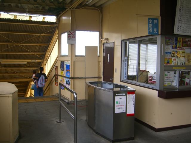 ホームの横はドブ川と住宅街です。1Fと2Fには昔、商店や歯医者があったらしく店舗の店名のみが残っていて現在は営業していないです。駅舎の上はマンションになっていて、駅前には小さなスーパーがあり駐車場になっていて閑散としています。