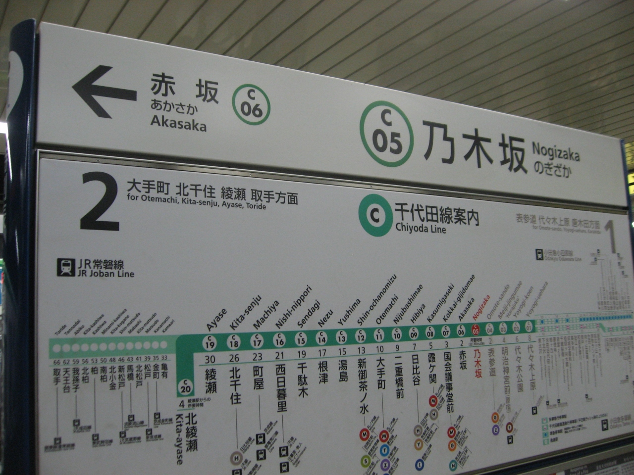 東京メトロ千代田線の駅です。駅番号はC05。構造は島式ホームです。近隣には明治時代の軍人である乃木希典将軍を祀っている乃木神社や結婚式場の乃木会館があります。またリッツカールトンホテルなどがある東京ミッドタウンには徒歩3分ほどと意外に近いです。