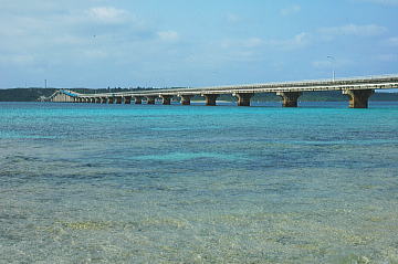 来間大橋は、宮古島と来間島を結ぶ、全長1,690mの橋で、開通は平成7(1995)年3月13日。開通当時は、沖縄県内最長の橋でした。現在も宮古諸島では最長です。ただし、現在宮古島と伊良部島の間に伊良部大橋が建設中なので、これが完成すれば、その地位も抜かれてしまいますが。