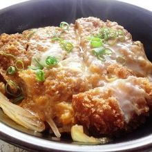 写真は、お勧めのかつ丼。そばとセットで、なお美味しいです。