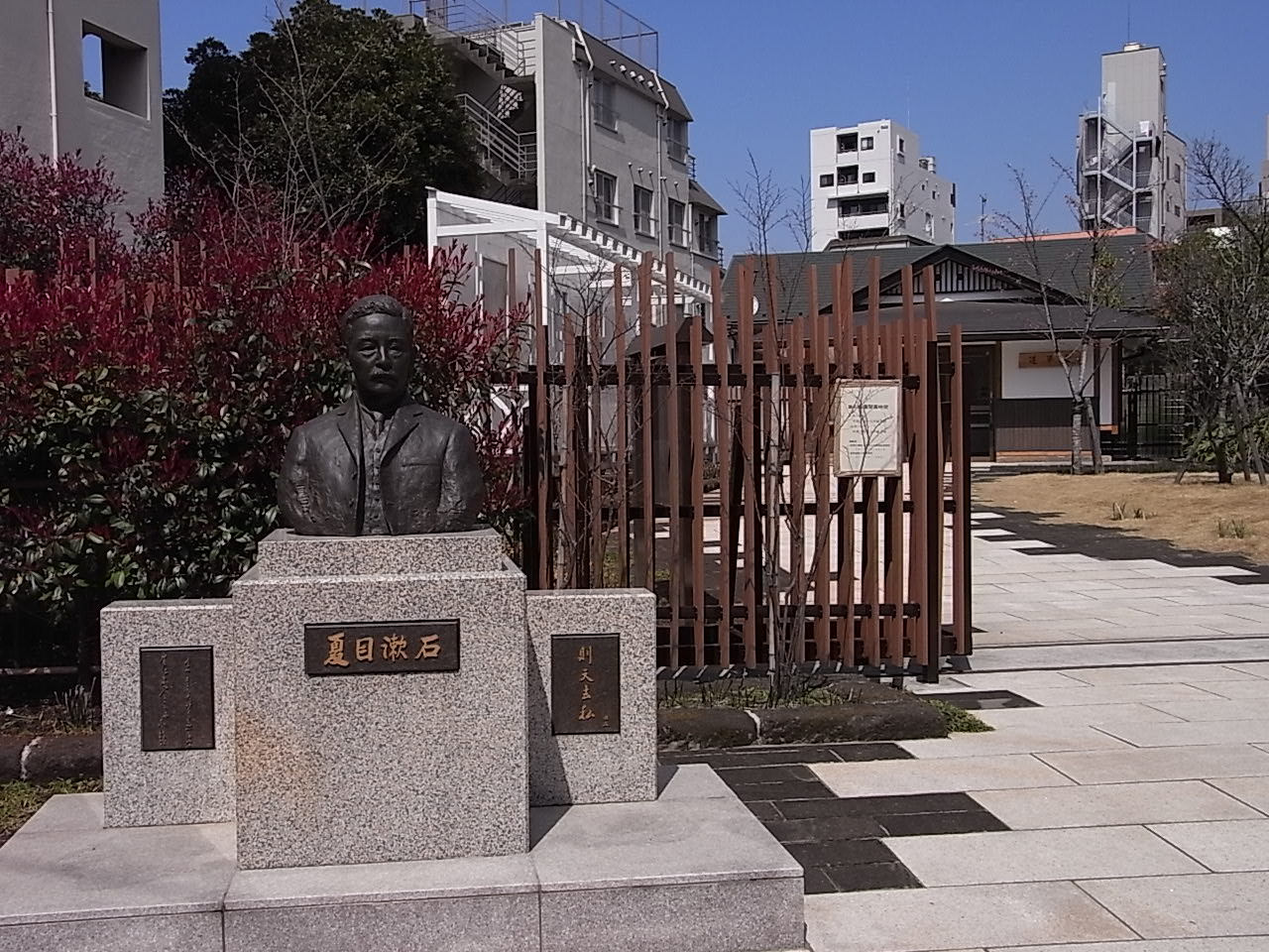 漱石が大正5(1916)年に亡くなるまで過ごした「漱石山房」があった地が、現在は漱石公園となっています。