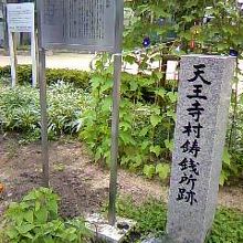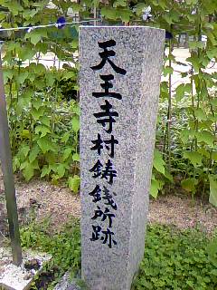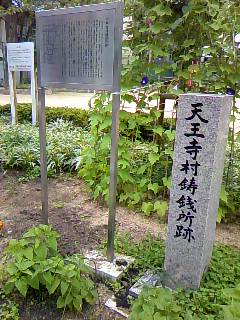 日本橋の黒門市場よりほど近い場所、黒門公園の入り口付近には天王寺村鋳銭所跡(てんのうじむらちゅうせんじょあと)がありました。