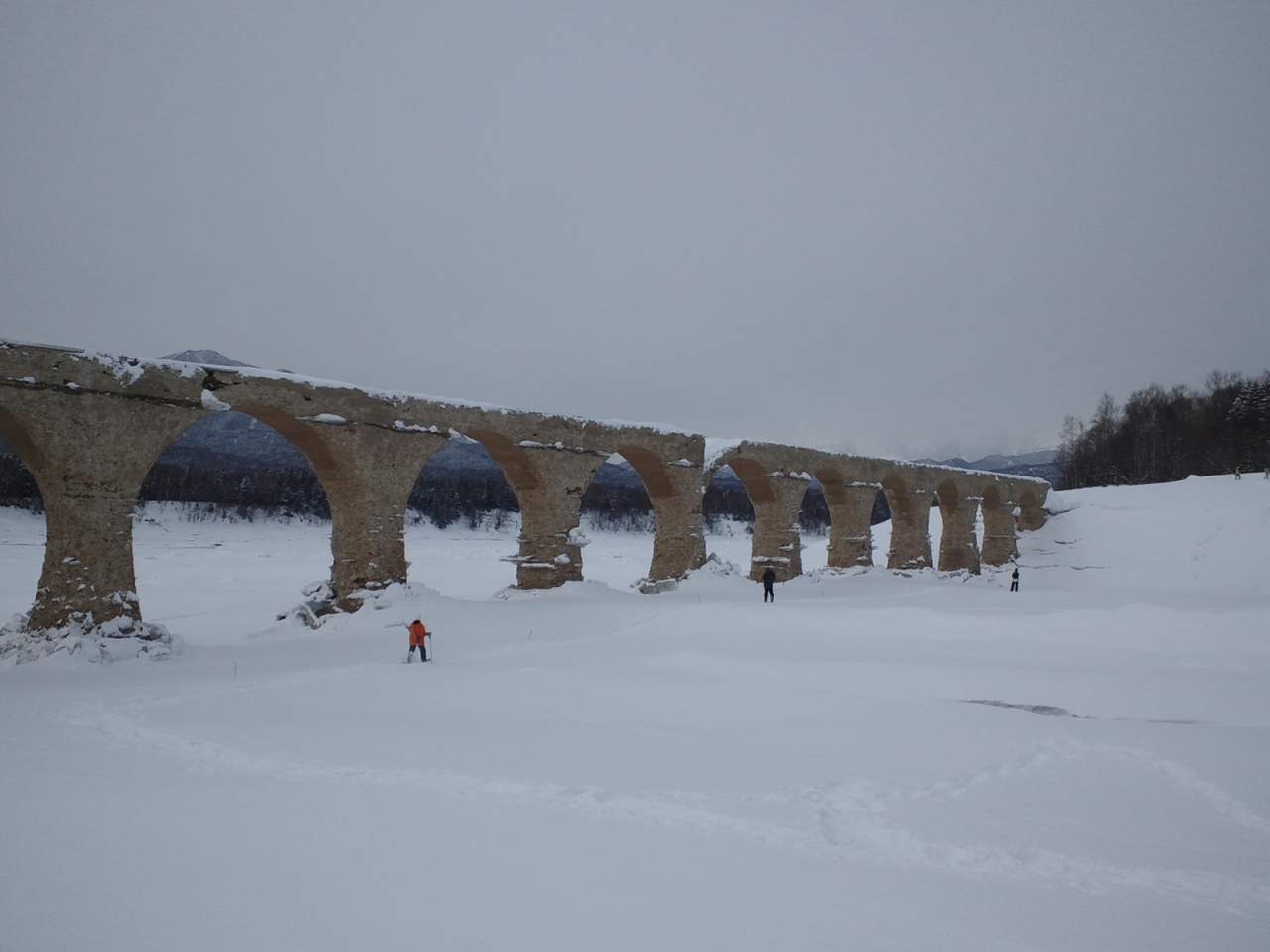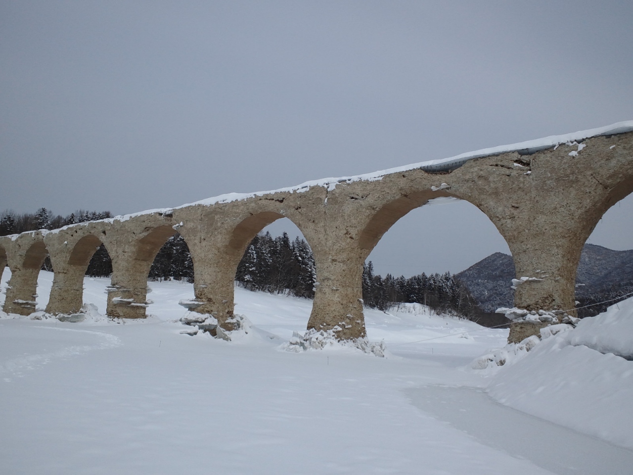 旧国鉄士幌線のタウシュベツ橋梁。夏は糠平湖に沈んでしまうので、一番の見ごろは冬。