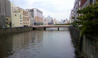 橋からの眺めも良く、遠目に見える緑あふれる吊橋の浮庭橋(うきにわばし)や湊町リバープレイスも美しかったです。